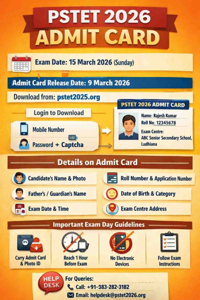 PSTET 2026 Admit Card: Release Update, Download Link, Exam Day Guidelines